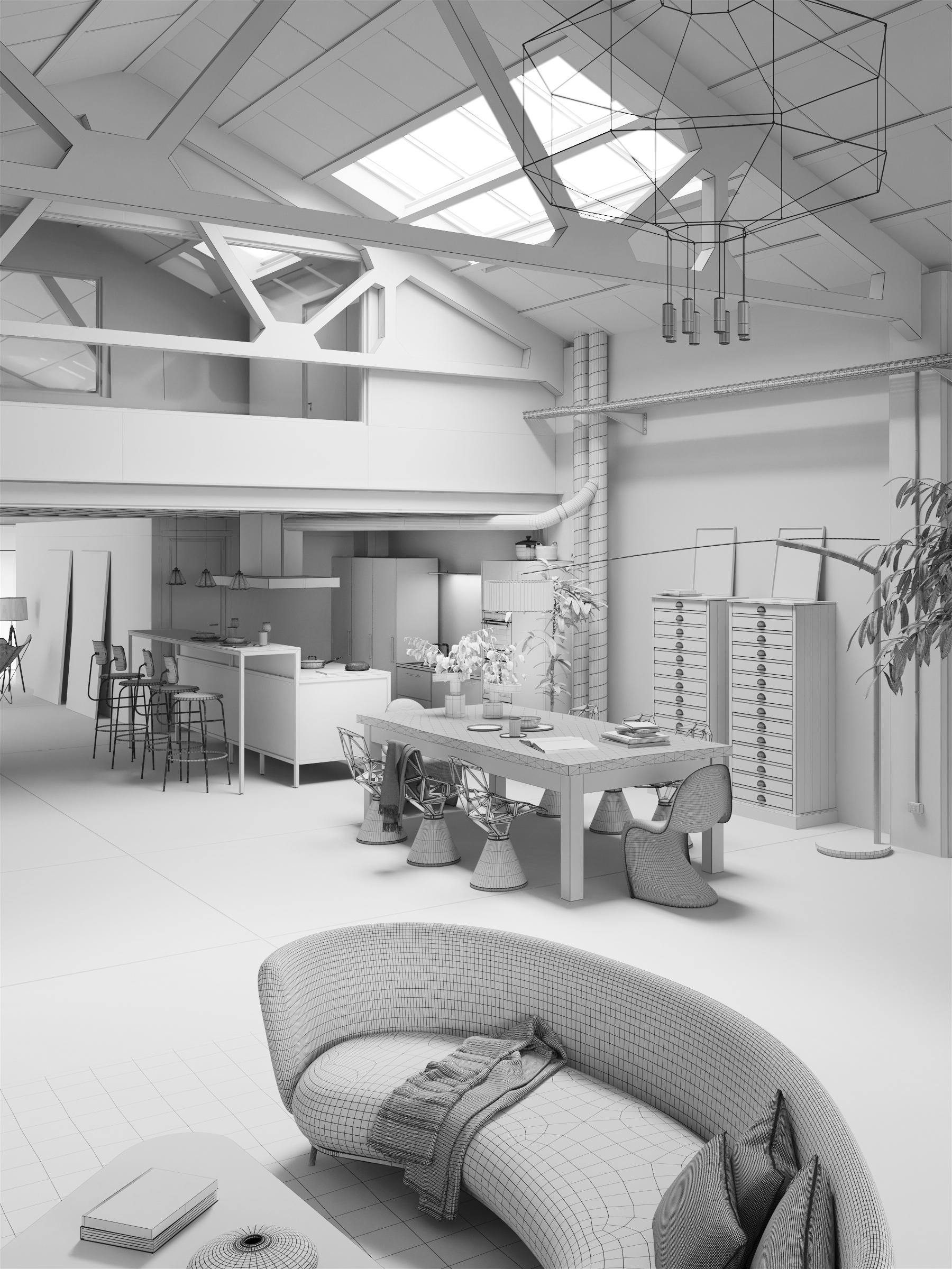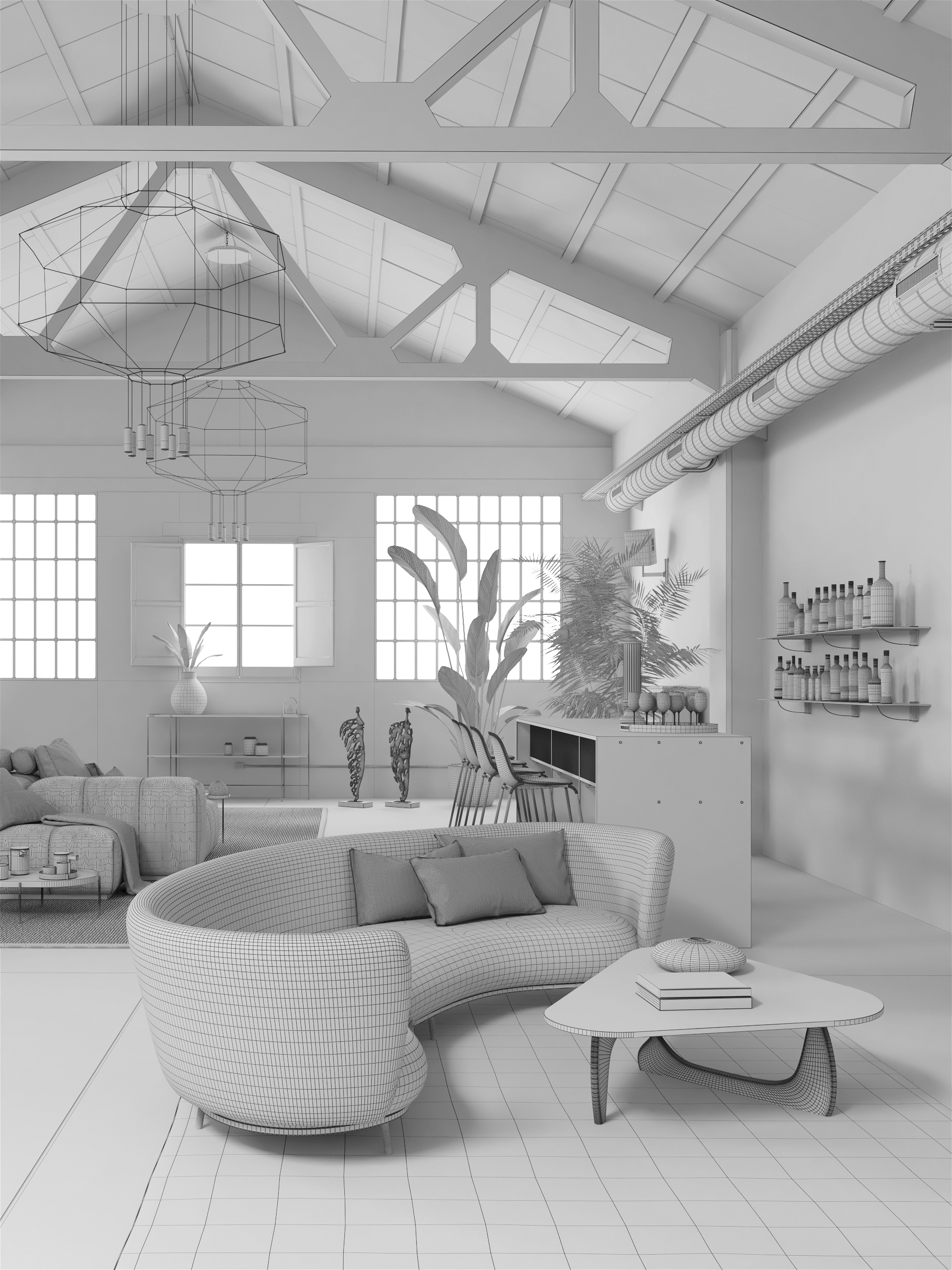 Qui trovi il set completo delle immagini realizzate per questo progetto, che mostrano il confronto tra il render finale e il modello wireframe.