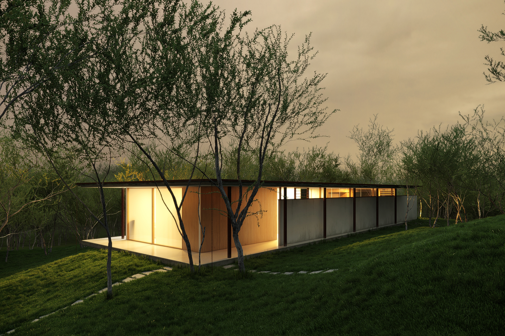 Replica in CG di “Los Faiques Dwelling” (Yunguilla Valley, Ecuador), realizzato da Duran&Hermida arquitectos asociados (progetto originale QUI).